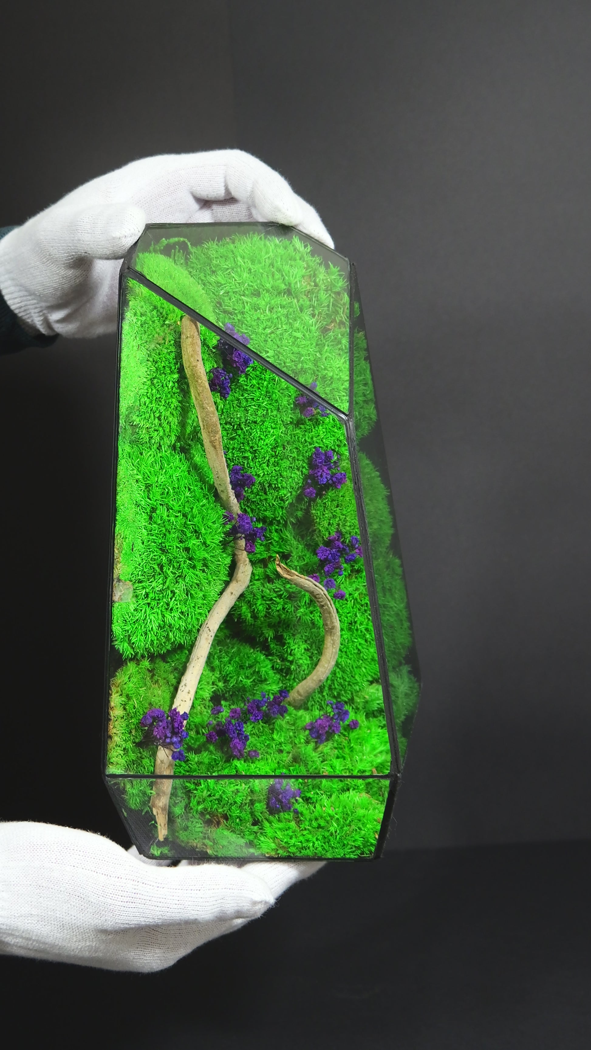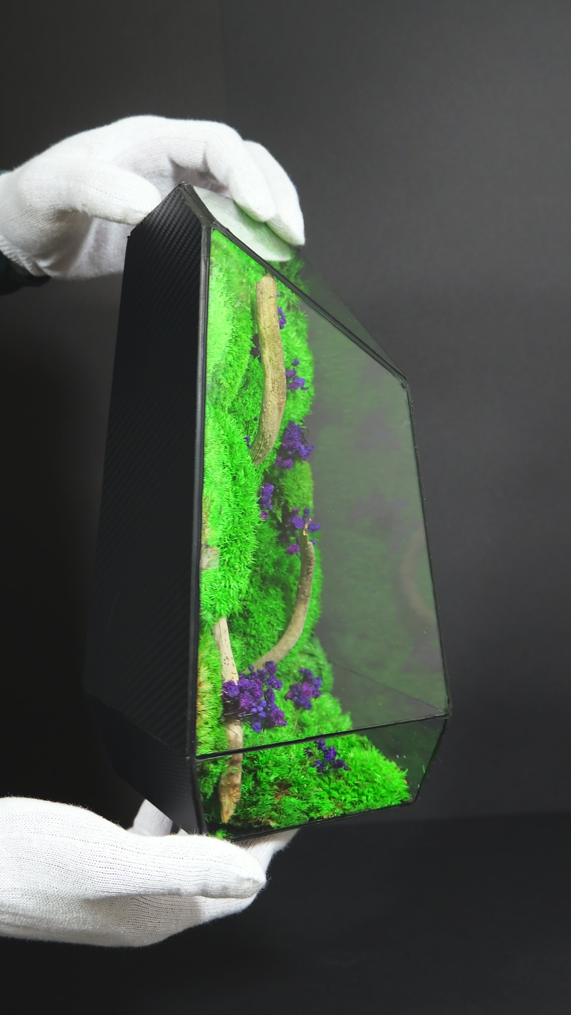 Il nostro terrario sotto a specifiche osservazioni che forniamo al cliente rimane in vita per anni.