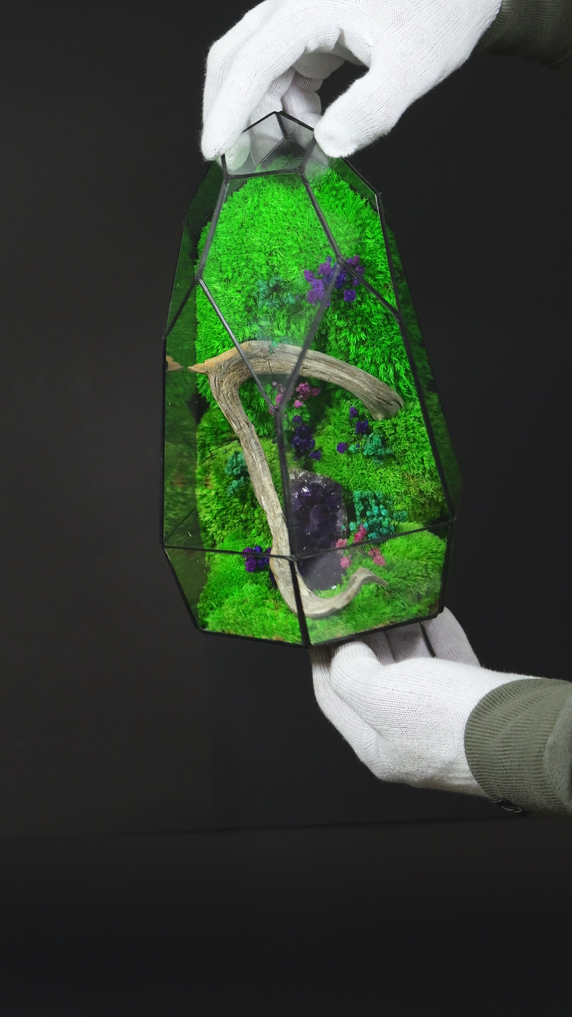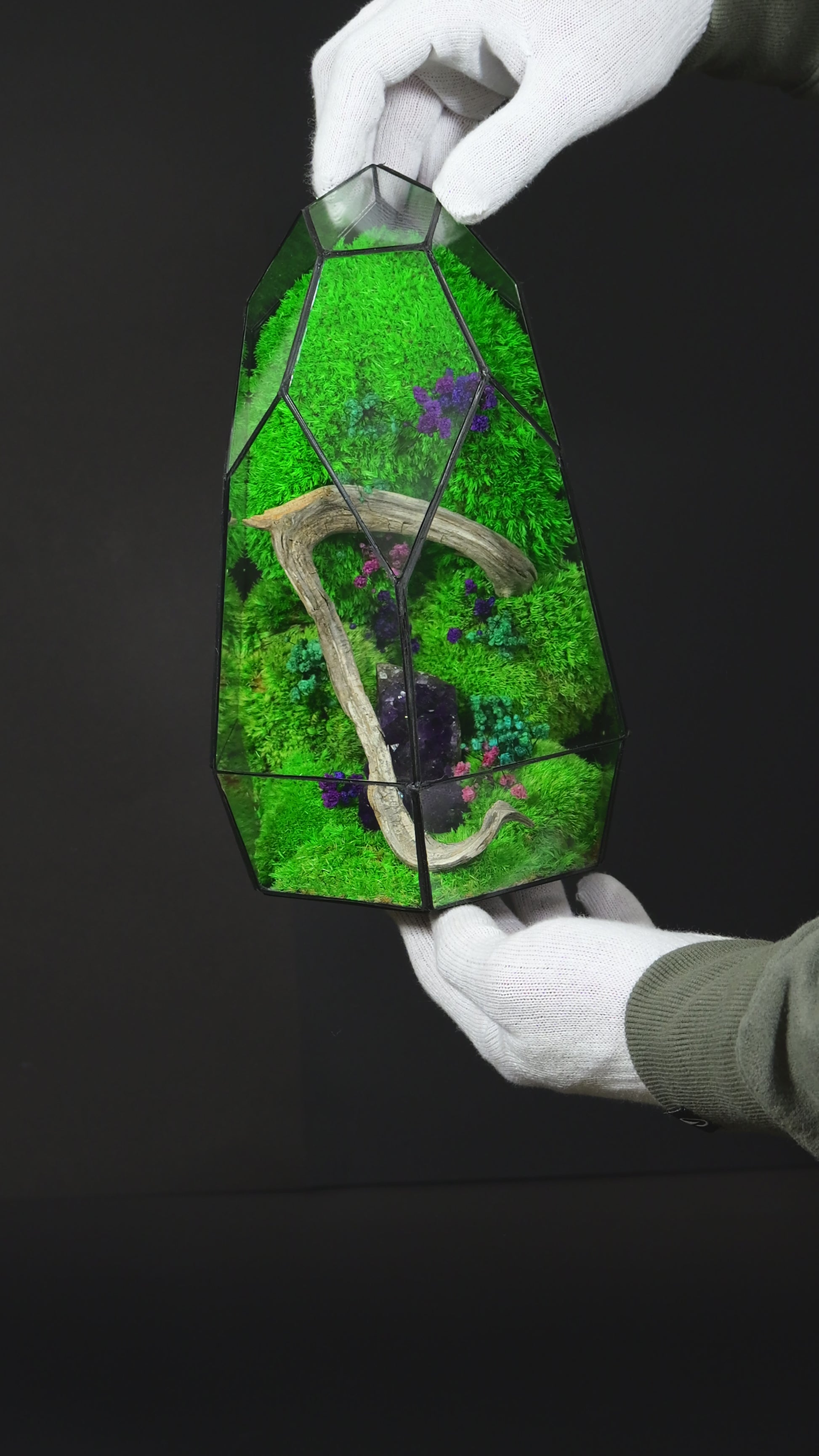 Il nostro terrario sotto a specifiche osservazioni che forniamo al cliente rimane in vita per anni.