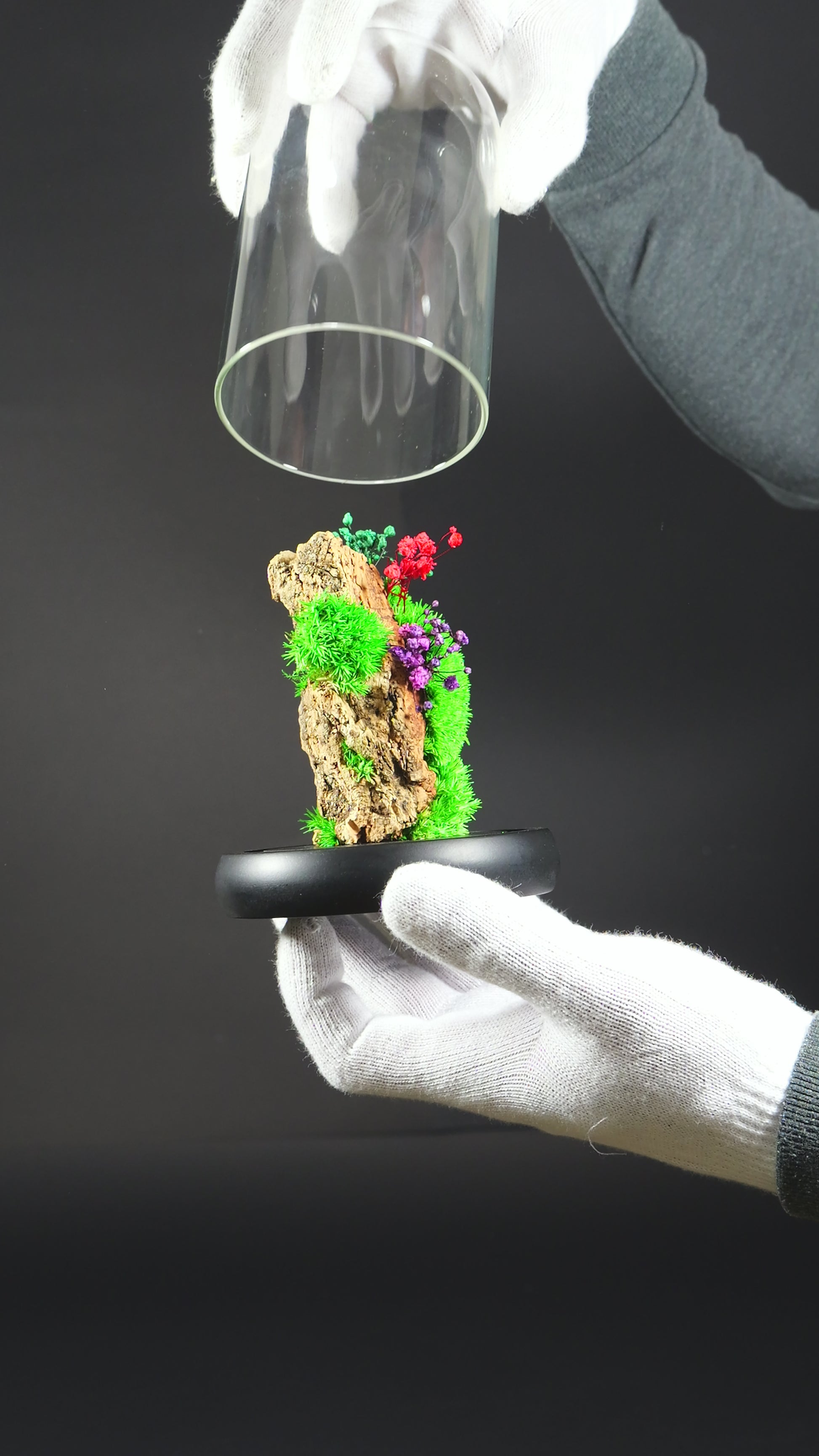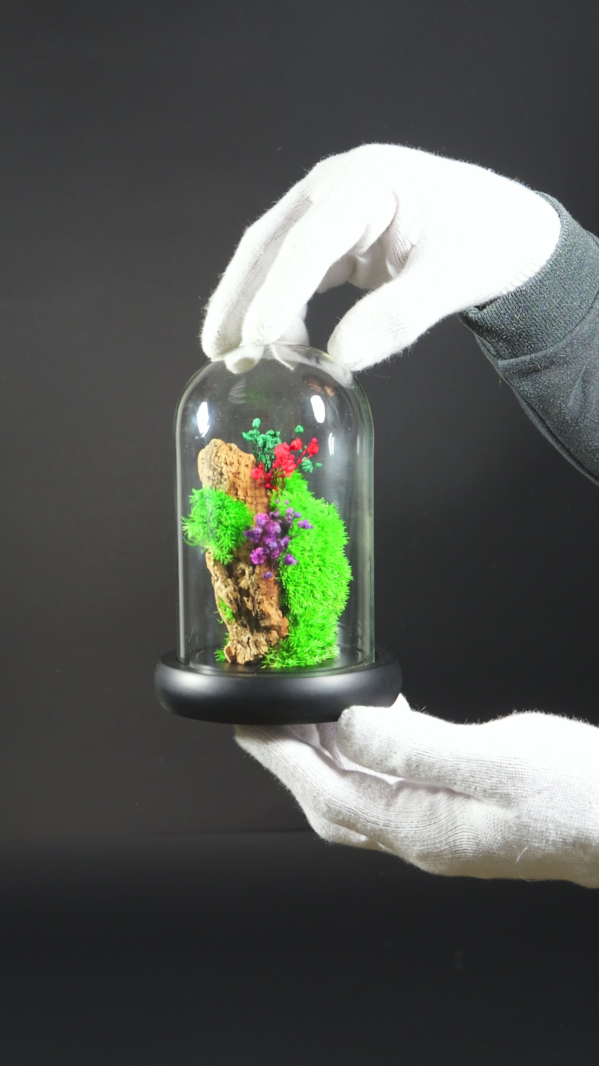 Il muschio è preservato nel picco del suo ciclo vitale viene raccolto nel rispetto delle normative vigenti e subisce un processo di preservazione che ne congela l'invecchiamento.