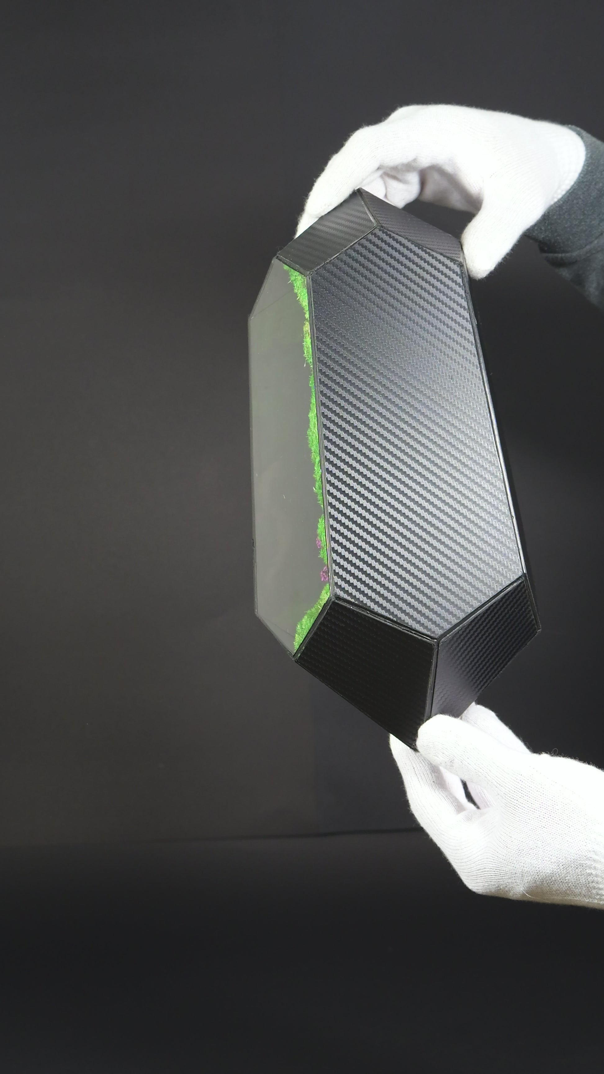 Il muschio è preservato nel picco del suo ciclo vitale viene raccolto nel rispetto delle normative vigenti e subisce un processo di preservazione che ne congela l'invecchiamento.
